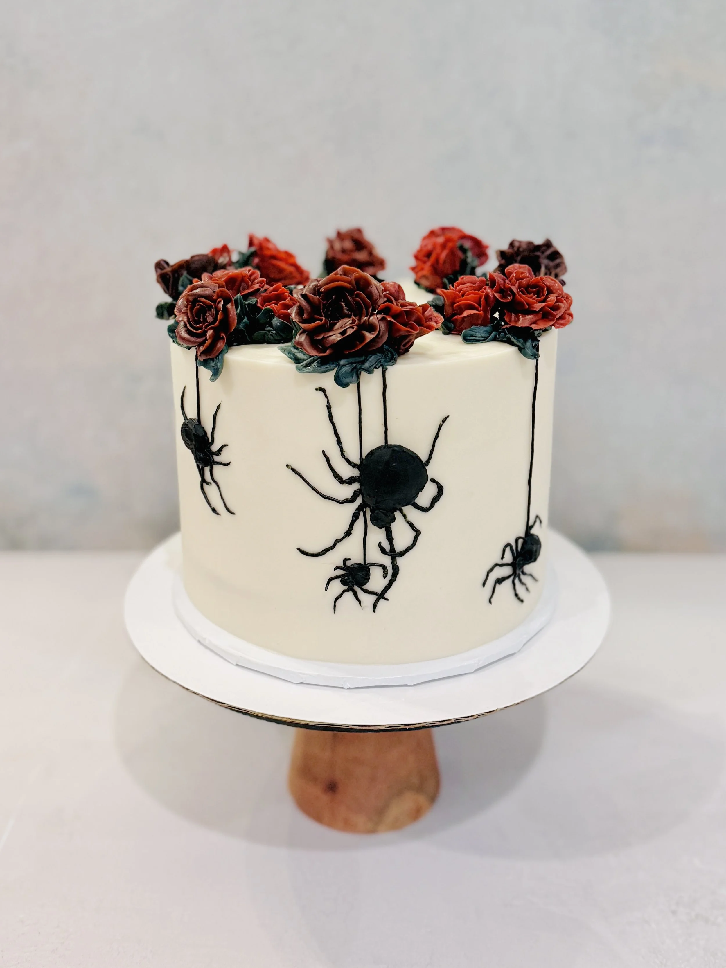 Learn to create a floral cake with “spooky” spiders just in time for Halloween! You’ll start by learning how to make silky Italian meringue. Next, we’ll dive into how to color buttercream, stack, fill and frost a cake evenly and apply a smooth frosting finish. You’ll practice piping rich red roses and dangling spiders out of buttercream to top your creation. Perfect for beginners and enthusiasts looking to level up their cake artistry with a sweet and spooky surprise. You will get to take home the piping tips (to hopefully continue practicing!) and receive an electronic guide for the buttercream recipe and flower piping. Open to ages 12+. All supplies, light snacks and drinks will be provided.